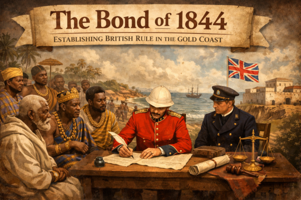 📰 Covered later by: Gold Coast Gazette, missionary newsletters The signing of the Bond of 1844 between Fante chiefs and the British Crown formalized colonial judicial authority in the Gold Coast. Though newspapers were limited at the time, later colonial press publications referenced the Bond as the legal cornerstone of British rule, shaping editorial narratives…