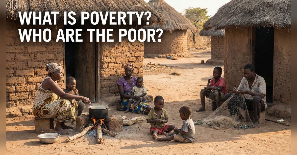 Poverty simply means deprivation. When a person lacks something that is important for living well, that person is said to be poor. Most of the time, when people talk about poverty, they are referring to lack of money or material things. From this point of view, poor people are those who do not have enough money.